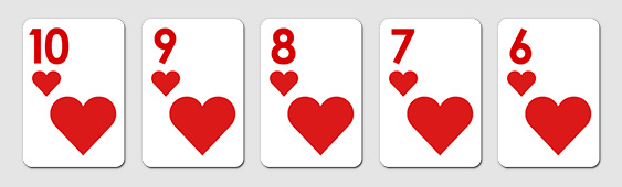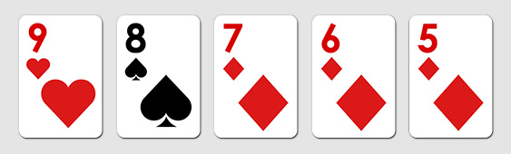 스트레이트는 무늬 상관없이 5장의 숫자가 연속되는 경우입니다. 은어로는 줄이라는 표현이 있습니다.