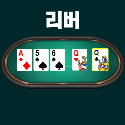 이후 턴도 플랍과 마찬가지로 배팅 후 액션이 끝나면 마지막 카드 리버 카드를 오픈합니다.