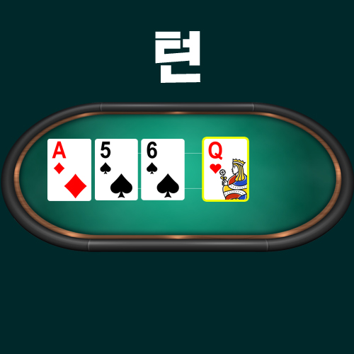 플롭 상황에서 모든 플레이어가 배팅이 끝나면 턴 카드로 한 장을 더 펼치며 배팅을 시작하게 됩니다.