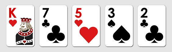 하이카드는 족보가 하나도 맞지 않은 경우를 말하는데요. 서로 하이 카드인 경우 높은 숫자순으로 승부를 가려, 승패를 나눕니다.
